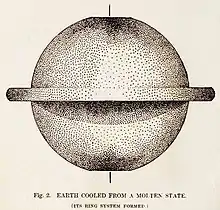 Vail argued that the Earth once had rings like Saturn's, in what became known as the "Vailan theory" or "annular theory".[4][5] His 1886 "Canopy Theory" proposed that the Earth had been ringed by a toroidal mass of ice, which he named the "firmament", following the usage in Genesis 1:6-8.[6][7] Vail supposed that this could explain Noah's Flood, as he described in his 1874 book The Earth's Aqueous Ring: or The Deluge and its Cause.[8]