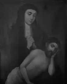 She specialized in oil paintings of the childhood of the Virgin and of the baby Jesus, adorned with flowers and animals.[2] It is speculated that she would have worked alongside her father on the Milagros de La virgen series (1699-1706) while she worked in his studio. One of her most famous works is a portrait of Juana de Jesus, which was painted posthumously. A contemporary writer, Francisco Javier Antonio, complimented the likeness, attributing its accuracy to Ide Cisneros having met Juana de Jesus several times.[3] This work is the only securely attributed painting to her, but unfortunately it has not survived, and there only remains a copy at the convent of Santa Clara in Quito.[1] Juana "looks incredibly Quiteña with a long nose, a subdued smile, a narrow face, and delicate hands".[4]