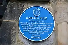 Blue plaque at Adel Grange – Home of Isabella Ford