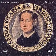 Isabella Leonarda (6 September 1620 – 25 February 1704) was an Italian composer from Novara.[2] At the age of 16, she entered the Collegio di Sant'Orsola, an Ursuline convent, where she stayed for the remainder of her life. Leonarda is most renowned for the numerous compositions that she wrote during her time at the convent, making her one of the most productive female composers of her time.