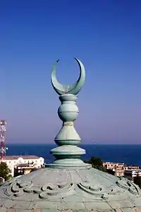 The grave of Sari Saltik, reportedly first erected into a monument by Sultan Bayezid, has since endured as a major shrine in Romanian Islam.[14] The shrine, which has been described as a cenotaph, is one of many places where the Sheikh is supposed to be buried: a similar tradition is held by various local communities throughout the Balkans, who argue that his tomb is located in Kaliakra, Babaeski, Blagaj, Edirne, the Has District, Krujë, or Sveti Naum.[15] Other accounts hold that Saltuk was buried in the Anatolian city of İznik,[16] in Buzău, Wallachia, or even as far south as the Mediterranean island of Corfu or as far north as the Polish city of Gdańsk.[15] The toponym Babadağ (Turkish for "Old Man's Mountain", later adapted into Romanian as Babadag) is a probable reference to Sari Saltik, and a Dobrujan Muslim account recorded by chronicler Evliya Çelebi in the late 15th century has it that the name surfaced soon after a Christian attack partly destroyed the tomb.[14]