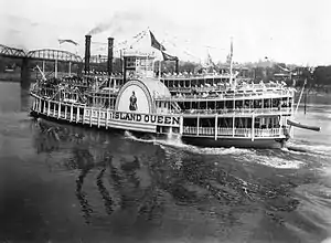 The Island Queen was a series of two American sidewheeler steamboats built in 1896 and 1925 respectively. Both vessels were passenger carriers cruising along the Mississippi and Ohio rivers as both an excursion boat and tramp steamer. The first Island Queen burned in 1922 in a fire which destroyed several other vessels. The second Island Queen was destroyed in 1947 when her chief engineer, using a welding torch, accidentally cut into her fuel tank. Island Queen was reduced to her steel frame, and was scrapped by a local company.