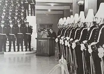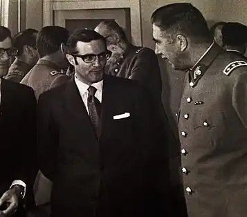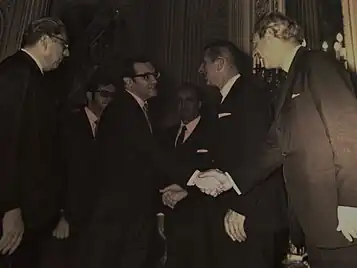 On 19 April 1965, President Díaz Ordaz appointed him Mexican Ambassador to Chile.[55][56] After his appointment was ratified by the Mexican Senate and the Chilean government granted their agrément, he arrived in Santiago de Chile on 25 May.[57] On 28 May, he presented his letters of credence to President Eduardo Frei Montalva at the La Moneda Palace.[58][59] He later stated that heading the diplomatic mission "in Chile was a watershed in my professional life: it was not only my first embassy; It was also my first direct experience with bilateral diplomacy. In addition to the difficulties faced by all newly arrived Ambassadors, I later added the challenge and the opportunity to serve as Dean of the Diplomatic Corps accredited in Chile. As in most of the South American nations, in that country the Apostolic Nuncio is, ex officio, Dean of the Diplomatic Corps; As Vice-Dean, I had to replace three different nuncios during their oftentimes prolonged absences."[30]