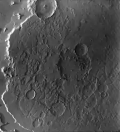 Ismeniae Fossae is a region containing irregular valleys on Mars. It is 287 km across and centered at 41°19′N 38°21′E / 41.31°N 38.35°E.[1] It is located in the Ismenius Lacus quadrangle. It is along the dichotomy boundary that is between the old, heavily cratered southern highlands and the low plains of the northern hemisphere. Ismeniae Fossae is to the immediate west of Moreux crater. The regions of plateaus known as Deuteronilus Mensae and Protonilus Mensae are to the northwest and northeast of Ismeniae Fossae.