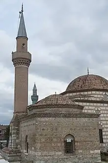 In 1331, Orhan captured the city from the Byzantines and for a short period the town became the capital of the expanding Ottoman Emirate.[4] The large church of Hagia Sophia in the centre of the town was converted into the Orhan Mosque[5] and a medrese (theological school) and hamam (bathhouse) were built nearby.[6] In 1334 Orhan built another mosque and an imaret (soup kitchen) just outside the Yenisehir gate (Yenişeh Kapısı) on the south side of the town.[7]