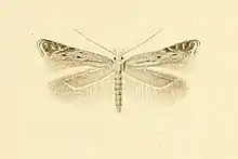 The wingspan is about 10 mm. The fore- and hindwings are grey.[3]