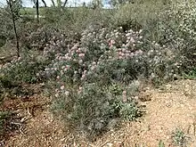 Isopogon divergens, commonly known as spreading coneflower,[2] is a species of plant in the family Proteaceae and is endemic to the south-west of Western Australia. It is a shrub with pinnate leaves and more or less spherical heads of glabrous pink flowers followed by an oval to cylindrical fruiting cone.