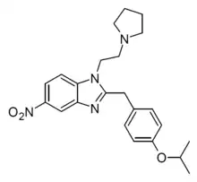Isotonitazepyne (N-pyrrolidino isotonitazene) is a benzimidazole derivative with potent opioid effects, which has been sold as a designer drug over the internet. It was first detected in Russia in 2022,[1] and has since been found around the world, tentatively identified in New Zealand in 2023 though it can be difficult to distinguish from the isomeric compound protonitazepyne.[2] It is specifically listed as an illegal drug in the US state of Virginia.[3]