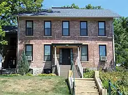 The Israel Hall House is a historic building located on the east side of Davenport, Iowa, United States. By the time this house was built, Israel Hall had retired and was serving as the secretary-treasurer of the Oakdale Cemetery Corporation. He may have used it as a boarding house as well.[2] The two-story brick house is a late example of the Greek Revival style. The side gable is influenced by the Georgian Revival as opposed to the temple front that is more typical of the Greek Revival. The round-arch window in the attic is typical feature found in Davenport residential architecture in this era.[2] An addition to the back of the house was built around 1895. The house features a gabled roof, while the addition featured a hipped roof. The single bay porch on the front of the house replaced a full sized porch that was also not original, but replaced the original single-bay porch.[2] The house rests on a raised lot and is set back from the street level. It has been listed on the National Register of Historic Places since 1984.[1]