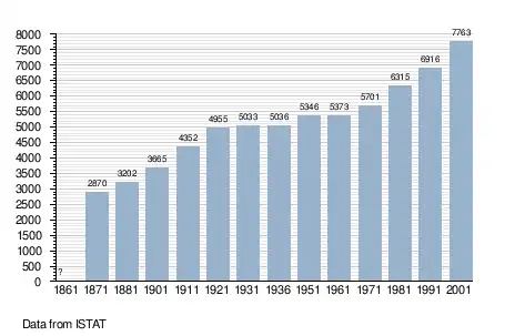 - ↑ "Popolazione Residente al 1° Gennaio 2018". Italian National Institute of Statistics. Retrieved 16 March 2019.