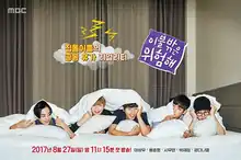It's Dangerous Beyond The Blankets (Korean: 이불 밖은 위험해; RR: Ibul Bakk-eun Wiheomhae) is a South Korean variety show. The show features "homebodies", people who love to stay home doing nothing, going on a trip together.[1]