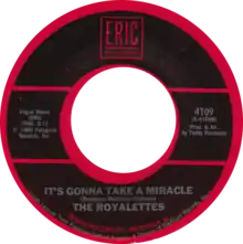 "It's Gonna Take a Miracle" is a song written by Teddy Randazzo, Bobby Weinstein, and Lou Stallman. It was first an R&B hit in 1965 for The Royalettes, which reached the Top 30 on the U.S. R&B chart and peaked at number 41 on the Billboard Hot 100 and number 37 on Cash Box.[2][3]