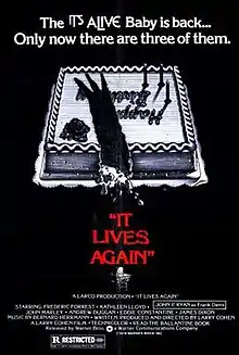 It Lives Again (also known as It's Alive II) is a 1978 American science fiction horror film written, produced and directed by Larry Cohen. It is the sequel to the 1974 film It's Alive. The film stars Frederic Forrest, Kathleen Lloyd, John P. Ryan, John Marley, Andrew Duggan and Eddie Constantine. The film was released by Warner Bros. on May 10, 1978.[2] This was followed by a 1987 sequel It's Alive III: Island of the Alive.