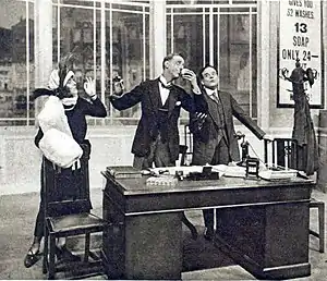 It was first presented on the Broadway stage on 8 September 1914, at the Cohan Theatre[2] and ran for nearly a year.[3] The playwrights substantially rewrote the play for a new production in London by the actor-manager Tom Walls, at the Aldwych Theatre. This opened on 2 February 1924 and closed on 10 July 1925, a total of 598 performances.[4] It was the first of a sequence of twelve "Aldwych farces" presented at the theatre until 1933, mostly original farces written by Ben Travers. By contrast with later plays in the series, in which Walls played worldly and sometimes shady characters, with Ralph Lynn as his naïve associate, in It Pays to Advertise Walls's character is upright and conventional, and Lynn is the manipulative schemer.[1]