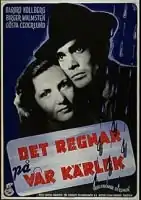 It Rains on Our Love (Swedish: Det regnar på vår kärlek) is a 1946 Swedish drama film directed by Ingmar Bergman from the screenplay written by Herbert Grevenius and Bergman, based on the Norwegian play Bra Mennesker (Good People) by Oskar Braaten.[1] It Rains on Our Love is the first film directed by Bergman to include actor Gunnar Björnstrand in a credited role (he also had a credited role in Bergman's screenwriting debut Torment (1944)). Björnstrand would go on to act in nearly twenty of Bergman's films.