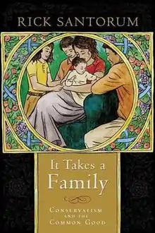 It Takes a Family is a 2005 book by then Pennsylvania Senator Rick Santorum. The title is a response to the 1996 book It Takes a Village by then-First Lady Hillary Clinton. In the book, Santorum states that the family structure is necessary. He argues that liberal social policies have devastated the family structure and that prevailing socially liberal attitudes have systematically devalued families across the board. He argues that government should take a proactive role in promoting strong families.