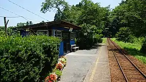 Itabu Station has a single side platform serving bidirectional traffic. The station is unstaffed, but there is a small shelter on the platform.
