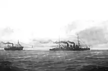 In late 1906, the ship took part in experiments with coaling while underway. She towed the collier SS Sterope at a speed of 12 knots (22 km/h; 14 mph) while coal was transferred via the towing cable. An average of 60 t (59 long tons; 66 short tons) of coal was transferred per hour during the test.[10] Starting in 1908, Liguria was modified to operate an observation balloon. This service, which lasted until 1911, involved towing a "draken" balloon—invented by the Germans August von Parseval and Rudolf von Sigsfeld—to spot naval mines for the fleet.[11][12]