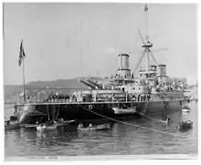 Sardegna was named after the island of Sardinia. She was built by the Arsenale di La Spezia in La Spezia, with her keel being laid down on 24 October 1885. She was launched on 20 September 1890, and completed on 16 February 1895.[1] After entering service, Sardegna was assigned to the 2nd Division of the Reserve Squadron as its flagship, along with the older ironclad Ruggiero di Lauria and the torpedo cruiser Aretusa. At the time, the ships of the Reserve Squadron were based in La Spezia.[2] Sardegna joined the ironclads Re Umberto, Ruggiero di Lauria, and Andrea Doria and the cruisers Stromboli, Etruria, and Partenope for a visit to Spithead in the United Kingdom in July 1895.[3] Later that year, the squadron stopped in Germany for the celebration held to mark the opening of the Kaiser Wilhelm Canal. While there, Sardegna accidentally ran aground in front of the canal, blocking the entrance for several days.[4]