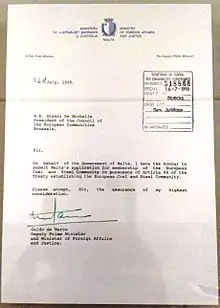 In 1980, Malta entered into a neutrality agreement with Italy, under which Malta agreed not to enter into any alliance and Italy agreed to guarantee Malta's neutrality.[4] Malta's relations with Italy have been described as "generally excellent".[5]