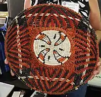 ![]() Iva Casuse Honwynum's Whirlwind (Bringer of Rain) pootsaya basket shown at the Heard Museum Guild Indian Fair and Market, 2017 | |