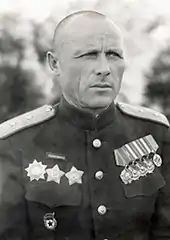 Ivan Semyonovich Bezugly (sometimes transliterated as Bezuglyi or Bezuglyy: Russian: Иван Семёнович Безуглый; 23 October 1897– 4 December 1983) was a Soviet Red Army officer who served as commander of the Red Army's 5th Airborne Corps in 1941, the first airborne corps of the Red Army to fight in World War II after the German invasion of the Soviet Union on 22 June 1941.[1] Suffering heavy casualties just south of Daugavpils in combat against the advancing Panzer units of Army Group North in the summer of 1941, the unit made its way to the Moscow Military District on 15 August.[1]
