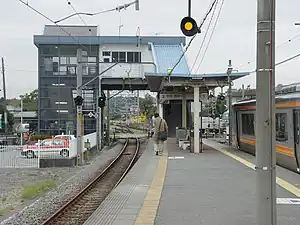 The station has a single island platform connected to the station building by a footbridge. The station was originally located on a switchback, which was eliminated when the line was electrified in 1968, and the platform realigned; a vestigal remnant of the former switchback is retained as a side track to the north of the station. The station building has automated ticket machines, TOICA automated turnstiles and a staffed ticket office.