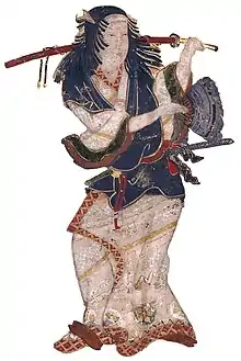 Izumo no Okuni (出雲 阿国, born c. 1578; died c. 1613) was a Japanese entertainer and shrine maiden who is believed to have invented the theatrical art form of kabuki. She is thought to have begun performing her new art style of kabuki (lit. 'the art of singing and dancing') theatre in the dry riverbed of the Kamo River in Kyoto. Okuni's troupe quickly gained immense popularity, and were known for their performers, who were often lower-class women Okuni had recruited to act in her all-female theatre group.