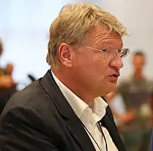 Meuthen was initially considered part of the Bernd Lucke-related, more economically liberal and moderate wing of the AfD near the start of the party's founding. He has described himself as an economic liberal but "pretty conservative" on other issues.[15] Following the election of Frauke Petry as AfD chairwoman, Meuthen was seen to ally himself with the party's more right-wing faction.[16] In 2016, he expressed support for what he termed a "conservative reformation" in Germany and argued against what he regards as lingering influence of the West German student movement on German politics.[17] He has expressed opposition to extremist elements within the AfD.[11]