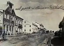 In 1890, the Silveira Martins Street was twelve blocks long.[7] In 1893, the toponym was changed again, honoring the former president of the province Júlio de Castilhos, but it was still called street.[8] Soon after, public lighting began to be installed with gas lamps, replaced in 1913 by electric lamps.[3] At the beginning of the 20th century, the street was still unpaved, but some stretches already had sidewalks, and many residences and other elegant buildings, such as the Scotti and Sassi palaces and the Central Theater, were already visible. In the 1920s, with the implementation of a new Code of Ordinances, new wooden buildings were forbidden in the center, as well as the expansion of existing ones; stricter rules for construction in general and more modern concepts about habitability, comfort, safety and hygiene were also introduced, which influenced the configuration of the buildings. The new regulations also caused the gradual removal of the many industries that had settled in the center and a retreat of the lower class, making the central region a stronghold of the elite and the middle class.[9][7][3] In 1939, Júlio de Castilhos Street became an avenue;[10] at the time, it stretched from João Pessoa Square to Angelina Michielon Street.[11]