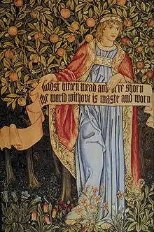 - ↑ Parry, Linda: William Morris and the Arts and Crafts Movement: A Sourcebook, New York, Portland House, 1989, p. 9–10 and Plate 12a