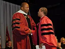 Motley went on to serve as vice president for business, marketing, and public affairs at the UMass System president's office, citing his hope that UMass Boston would move forward from the controversy.[5] Less than two years later, Wilson announced a leadership rotation;[6] following the retirement of UMass Medical School Chancellor Aaron Lazare, Collins moved to the Medical School to serve as interim chancellor, and Motley was ultimately named the eighth chancellor of UMass Boston.[7] He is the first African American to serve as the university's chancellor.[8]