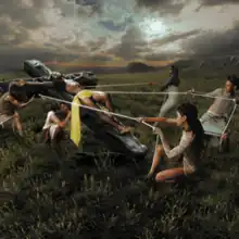 The song's music video was written and directed by Lil Nas X, with filming taking place in Mexico City.[6] The music video premiered on January 12, 2024, which shows several people, with those that look similar to celebrities such as singers Dolly Parton, Taylor Swift, Ed Sheeran, Mariah Carey, Kanye West, television personality Oprah Winfrey, and former President of the United States Barack Obama, walking to Heaven. The next shot then features Lil Nas X, walking in Heaven after the gates open, which also features a person bearing a resemblance to Michael Jackson, before the camera pans down to Hell, with Lil Nas X now boiling human body parts, before returning to Heaven to play a basketball game with Satan. After Lil Nas X scores a slam dunk, he performs a cheerleading sequence. The next shot features Lil Nas X being crucified similar to Jesus and being praised, before changing to a shot of Lil Nas X shearing a lamb, before panning again to him appearing in a fashion show; the show is watched by Ts Madison, who ends up alarmed with the news of a global flood. The next shot features Lil Nas X, now dressed up like Noah, leading an army of animals to an ark before the huge storm and flood hits; during the flood, Lil Nas X, sporting a golden cross, performs choreography on a rooftop. The video ends with Lil Nas X, now on the ark, sailing across the global flood. As sunshine breaks through, text appears on the screen, reading "Day Zero - A New Beginning" and "Therefore, if anyone is in Christ, He is a new creation. The old has passed away; behold, the new has come. (2 Corinthians 5:17)"[7][8]