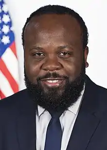 Ja'Ron K. Smith (born July 29, 1982) is an American political advisor. He served as a Deputy Assistant to the President and deputy director of the Office of American Innovation for Donald Trump from April 2019 to November 2020.[3][4] Smith had previously served in the administration as a Special Assistant to the President for Legislative Affairs from June 2018 to April 2019 and Special Assistant to the President for Domestic Policy from February to June 2018.[5][6][7][8][9] He also served as the director of urban affairs and revitalization from the beginning of the Trump administration in January 2017.[10]