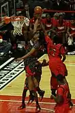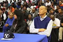 During the season, Parker established the Simeon single-game scoring record with 40 points in 21 minutes of play to go along with 16 rebounds and 6 blocked shots against Perspectives High School.[33][34][35] As a junior in high school, he received offers from Duke, Kansas, BYU, Kentucky, UNC, and others.[36] On February 17, Parker and Simeon won the Public League championship by defeating Curie Metropolitan High School 53–49.[37][38] Both the semifinals and finals were broadcast on ESPN3.[39] Coaches Izzo, Krzyzewski, Matta, and Weber as well as Mayor Emanuel and cadres of their assistants were among those in attendance to see this March 6 IHSA sectional semifinal against Young won by Simeon 52–42 in which Parker led the way with 18 points and 6 rebounds.[40][41][42] In the days prior to the state final four, Parker stated that although Coach Weber had been fired, he remained interested in Illinois and other in-state schools such as DePaul and Northwestern.[43] Parker had 15 points in the March 17 championship game 50–48 victory over the Sterling Brown-led Proviso East High School,[44][45] resulting in a 33–1 junior year record for Simeon.[46] The state semifinals and the finals were broadcast live on ESPN3.[39] For the season, Parker averaged 19.5 points, 8.9 rebounds, 4.9 assists, 3.3 blocks and 1.4 steals per game[46][47][48] or 20.4 points, 9.2 rebounds, 5.1 assists, 3.4 blocks and 1.5 steals per game,[49][50] depending on the source, while shooting 55 percent from the field, 39 percent from 3-point range and 72 percent from the free-throw line.[46][47][49] Following the season, he was featured in a May cover story in Sports Illustrated with the title "The Best High School Basketball Player since LeBron James Is . . . Jabari Parker but There's Something More Important to Him than Instant NBA Stardom: His Faith". The story presented his humility and noted that he is conflicted on his decision to serve as an LDS Church missionary.[7] Parker announced that he anticipated trimming his potential schools to a list of five by the end of the summer so that he could plan official visits.[51]