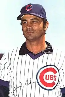 Aker remained a mainstay of the Yankee bullpen until 1972, when New York's acquisition of Sparky Lyle from Boston made Aker expendable.[10] On May 17, he was traded to the Chicago Cubs for cash considerations.[1][11] Aker pitched almost three seasons in the NL, and was standing in the bullpen feet away from where teammate Hank Aaron's historic 715th home run landed on April 8, 1974.[12]