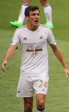 Over a year after his first goal for the club, on 1 May 2016, he scored his second, with a 20-yard curling shot in a 3–1 home victory over Liverpool.[37] This victory helped secure Swansea's Premier League status for the 2016–17 season.[38]