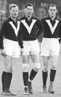Jim Park of Carlton, Dyer (age 24), and Phonse Kyne of Collingwood, at the Adelaide Oval, before the 1938 interstate match against South Australia