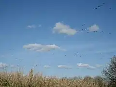 This area contains forest areas along the river bank, a forested wetland area, ponds, marshes, meadows, slough areas, and a forest section of mixed deciduous and conifer trees.[3] Jackson Bottom is home to a diverse group of plant and animal species. Animals that call the wetlands home include beavers, minks, nutria, ducks, blue and green herons, warblers, frogs, owls, red-tailed hawks, woodpeckers, opossums, deer, raccoons, newts, sparrows, finch, coyotes, and many other small rodents, birds, and reptiles. Migratory waterfowl include northern pintails, canvasbacks, blue-winged teal, green-winged teal, dusky Canada geese, and tundra swans.[3] Plant life there includes dogwood trees, Douglas fir, white oak, cocklebur, Columbia River sedge, red willow, Oregon ash, and other grass and tree species.[4]