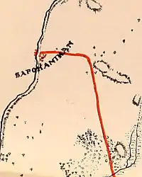 Two footpaths would emerge as foundational streets in what is today's Meatpacking district and West Village of Manhattan. One footpath led up from the riverbank trading station called Sapohanikan and was both largely perpendicular to the shore and aligned closely to the solar equinox of spring and fall. It would become what we today call Gansevoort Street.[3] Its parallel offspring, Horatio Street, forms the southern border of the park. The other footpath came up from the south and would become what we today call Greenwich Avenue, which forms the east side of the park.
