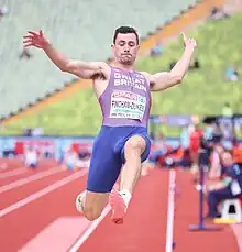 Ficham-Dukes relocated to Oklahoma State University and competed on the American collegiate circuit.[3] Returning to Europe to compete at the 2021 European Athletics Indoor Championships he finished seventh in the final of the long jump at the Arena Toruń in Poland in March 2021.[4] This event came just after he achieved a new personal best jump of 8.08m at the British trials in Lee Valley.[5] On 26 March, 2022 he jumped 8.45m 3.6w, the second longest jump in British history, in winning the Texas Relays.[6]