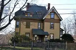The Jacob Manning House is a historic house in Reading, Massachusetts. Built in 1877 for garden nursery owner Jacob Manning, this 2+12-story wood-frame house is an excellent local example of Stick style architecture. It has a steeply pitched roof, multiple gables, tall thin windows, and decorative half-timber woodwork. The owner, Jacob Manning, owned one of the largest nurseries in the area, and was responsible for the landscaping of the Massachusetts pavilion at the 1893 Chicago World Fair.[2]