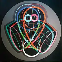 In 1966, Wexler began incorporating geometric elements into the free structure, which gradually became more restrained and rationalistic. From his familiarity and identification with Op Art style, he began using anaglyphs in his paintings – geometric structures that become three-dimensional and dynamic when viewed through red-green glasses. "Sometimes it seems to me that there are two painters struggling within me. One is very impulsive, painting the inspiration of the moment. The other is calculated, deliberate, he builds and experiments. Three or four years ago, I once again ran out of impulsive breath. I remembered the stereoscopic idea, which had long since appealed to me." In July 1969, Wexler showed 58 of his works in Tel Aviv Museum of Art: "For anyone who knows Wexler, this exhibition will come as no surprise. We know him as a 'seeking' artist who embodies two characteristics – the expressive characteristic, and the characteristic of pure common sense. [...] This time, the constructive approach is starting to dominate. This mandates extensive knowledge, a vivid imagination, and the curiosity of a researcher, all of which have merged here. In these works, Wexler has achieved a concentrated essence, constructive building that possesses immense imagination and colorfulness. [...] The painting is built on foundations of perspective, and becomes a body extending from the canvas to the viewer. Changing the angle of observation, changes the angles and the length of the shapes, creating the impression of movement."[8] In the early 1970s, Wexler exhausted the idea of anaglyphs, and his paintings were now reminiscent of geometric landscapes. Fifteen such landscapes were shown at Julie M. Gallery in Tel Aviv in April 1977. "Wexler returns to landscapes. […] [The] artist subjugates those abstract 'spatial' constructions to new graphic combinations that depict urban landscapes: intersecting structures of bridges, streaking highway junctions. [...] His returning to landscapes breaks the pure spatial constructiveness of his previous canvases."[9]