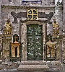 During a Jacobean holy year, pilgrims may enter the cathedral through the holy door (Porta Santa) to gain a plenary indulgence.[8] During a holy year, the lantern of the Berenguela Tower is lit throughout the year. otherwise it stays unlit. The light acts as a lighthouse to guide pilgrims to the cathedral during the holy years.[9]