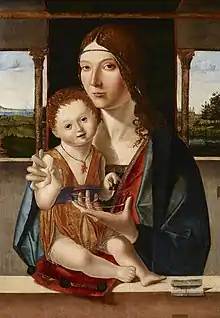 - ↑ "RENAISSANCE - LEARN MORE JACOBELLO Antonello Madonna and Child [Madonna col Bambino]". National Gallery of Australia.