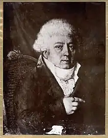 Cambry, the son of a naval engineer, was born in Lorient, Brittany. He embraced the French Revolution, and was appointed to various governmental positions, including district attorney for the Lorient commune in 1792.[1] In 1794 he became Commissioner for Science and Arts and embarked upon a journey in Brittany to visit the depots of confiscated nobility properties and the monasteries, which he published a report about in 1799. In 1799 he was appointed administrator of the Department of the Seine. On 2 March 1800, he was installed as prefect of the newly established département the Oise by Napoleon, and engaged himself deeply not just in administrative but also in cultural, archeological, and historical matters; when he left office, on 16 May 1802, he had given the new département a sense of unity and had convinced its inhabitants that they had a history they should be proud of.[2] He was the first president of the académie celtique which he cofounded in 1804 with the philologist Éloi Johanneau and the diplomat Michel-Ange Mangourit. The académie held its inaugural session on 30 March 1805 and subsequently reinvented itself as the Société des Antiquaires.[3] He remained president until his death in 1807. Considered a true Enlightenment man, he is praised as well for his service to the national construction of France.[1]