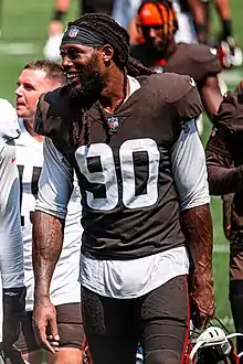 On April 14, 2021, Clowney signed a one-year contract with the Cleveland Browns.[101] Clowney had a productive first season in Cleveland, appearing in 14 games, posting 37 tackles, nine sacks (his most since 2018), and two forced fumbles, while being named a 2022 Pro Bowl alternate.[102][103]