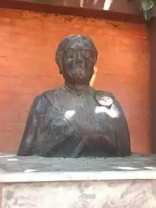 Bust of Jagadamba kumari devi in front of the compound of sajaha Yatayat where she donated 22 ropani of land
