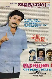 Jagratha: CBI Diary - Part 2 (transl.Caution) is a 1989 Indian Malayalam-language mystery thriller film directed by K. Madhu, starring Mammootty, Mukesh and Jagathy Sreekumar.