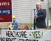 McGoldrick at a rally for single-payer healthcare, August 8, 2008